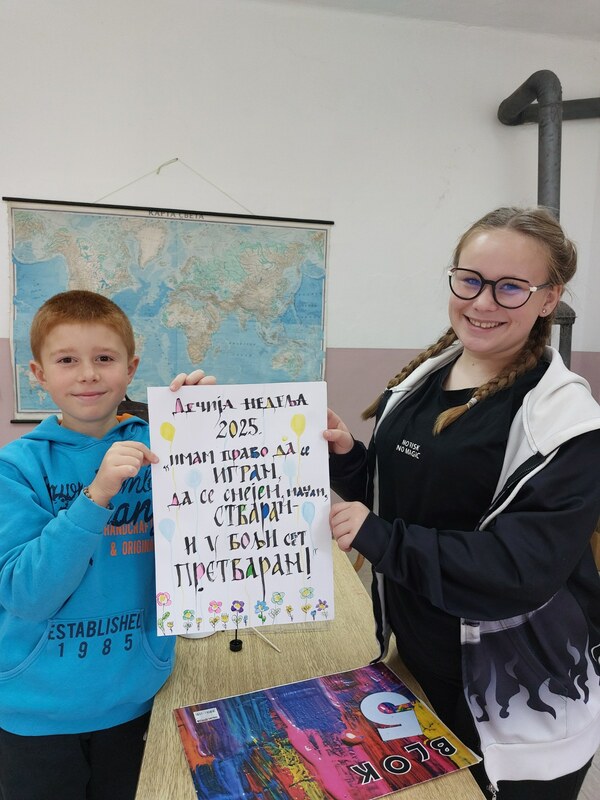 Дечија недеља се обележава од 6 -12.октобра 2025.године под слоганом ,,ИМАМ ПРАВА ДА СЕ ИГРАМ, ДА СЕ СМЕЈЕМ, МАШТАМ, СТВАРАМ И У БОЉИ СВЕТ ПРЕТВАРАМ.“ Поводом тога ученици наше школе су са стручним сардником, учитељицама и осталим наставницима током целе недеље реализовали разне едукативне радионице, као што су: ,,Добра играчка“, ,,Од идеје до сцене“, ,,Весели кишобранчић“ , ликовна радионица на тему ,,Имам права да се играм, да се смејем, маштам, стварам и у бољи свет претварам“, и ,,Спортске игре." Такође, школу су посетили запослени из Градске библиотеке ,,Радоје Домановић" из Сурдулице и том приликом поделили књиге нашим ученицима, а након тога ученици су рецитовали песме.